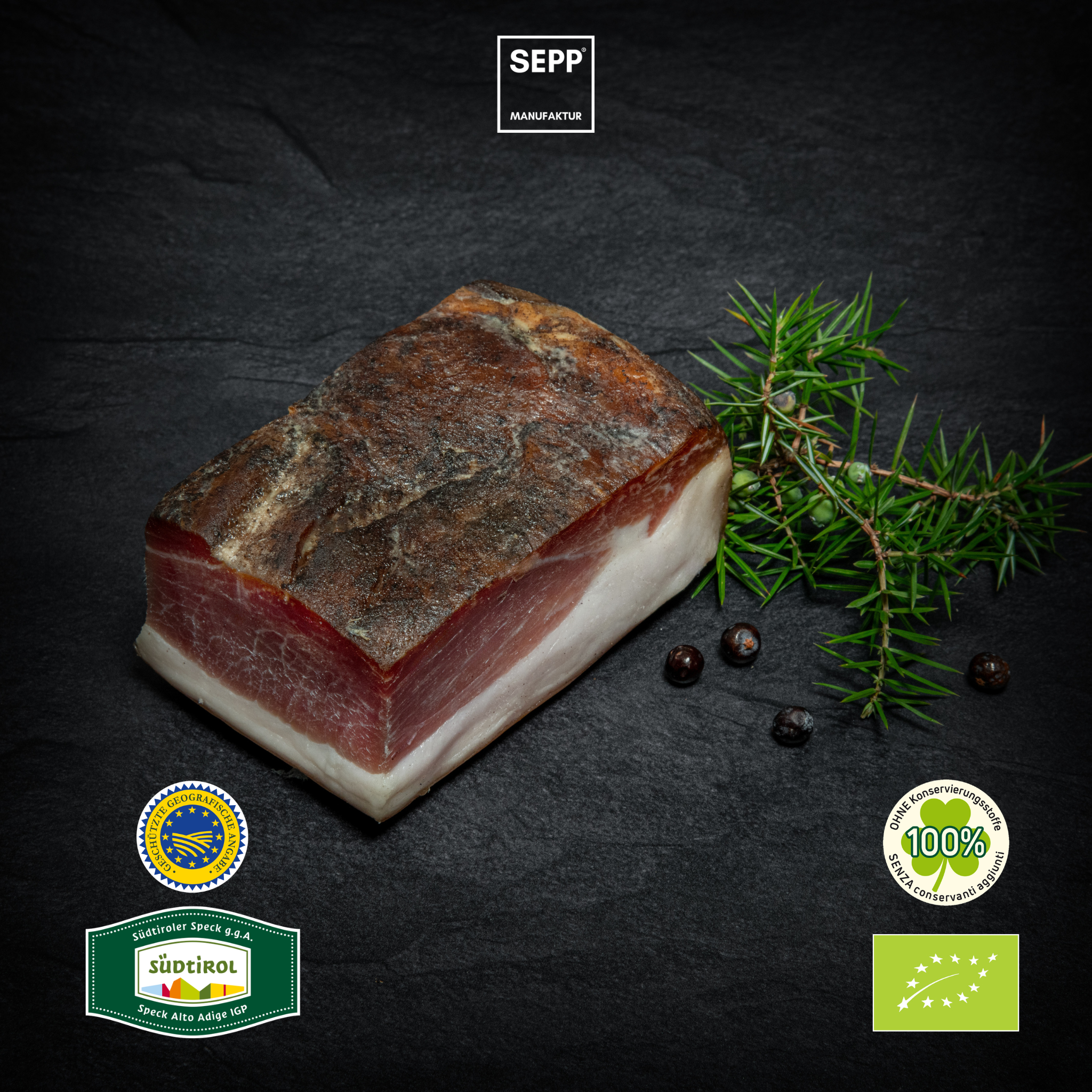 Unser SEPP'Manufaktur®- BIO Südtiroler Speck g.g.A. 💚 zeichnet sich aus durch die Verwendung von hochwertig ausgewählten Rohstoffen, welche durch handwerkliche und nachhaltige Art und Weise weiterverarbeitet werden.